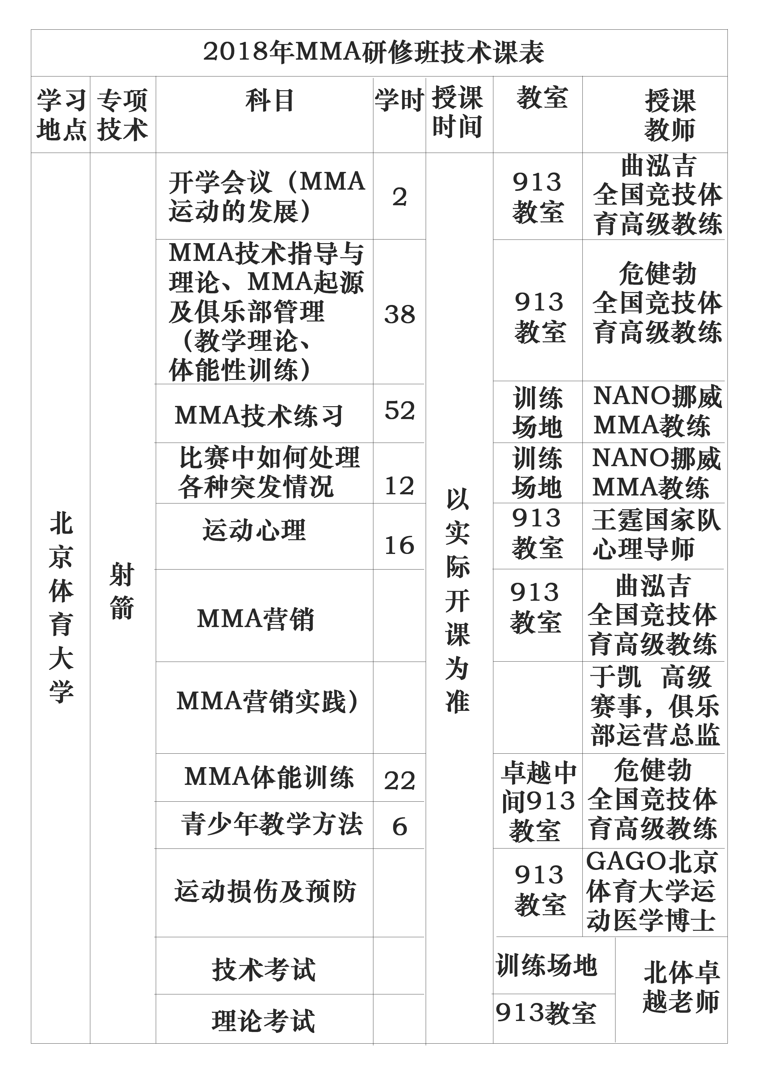 北京体育大学MMA学历研修班2018年招生简章